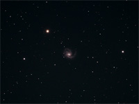 りょうけん座の銀河 M94 りょうけん座のコルカロリとβ星と2等辺三角形を作るところにある渦巻銀河です。中心が明るく、その周りに渦巻きがあります。さらにその外側に淡いリング状の構造が見られます。くじら座のM77とよく似た構造ですね。 12.8p屈折望遠鏡(fl=770mm F=6.0 1540mm相当にトリミング) 赤外改造デジタルカメラ ISO1600 2分露出を15枚合成 撮影地:兵庫県西脇市住吉町 撮影者:高原 摂竜(地球科学館) |