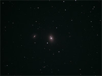 おとめ座の銀河 M59・M60 おとめ座の銀河群の東の端にあり、中央左がM60で右側がM59です。M60の隣には、渦巻銀河NGC4647が並んでいます。他にも画面中央下にNGC4638、M59の上にはIC3672があります。目をこらしてみると他にも淡い銀河がいくつか見つかります。 12.8p屈折望遠鏡(fl=1,040mm F=8.1) 赤外改造デジタルカメラ ISO1600 60秒露出を17枚合成 撮影地:兵庫県西脇市住吉町 撮影者:高原 摂竜(地球科学館) |