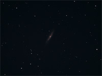 かみのけ座の銀河 NGC4565 かみのけ座の星がたくさん集まっているところのすぐ西側にある銀河です。渦巻銀河をほぼ真横から見た形で、銀河系も横から見るとこのように見えると考えられています。 20p反射望遠鏡(fl=800mm F=4.0を1600mm相当にトリミング) 赤外改造デジタルカメラ 2分露出を9枚合成 撮影地:兵庫県西脇市住吉町 撮影者:高原 摂竜(地球科学館) |